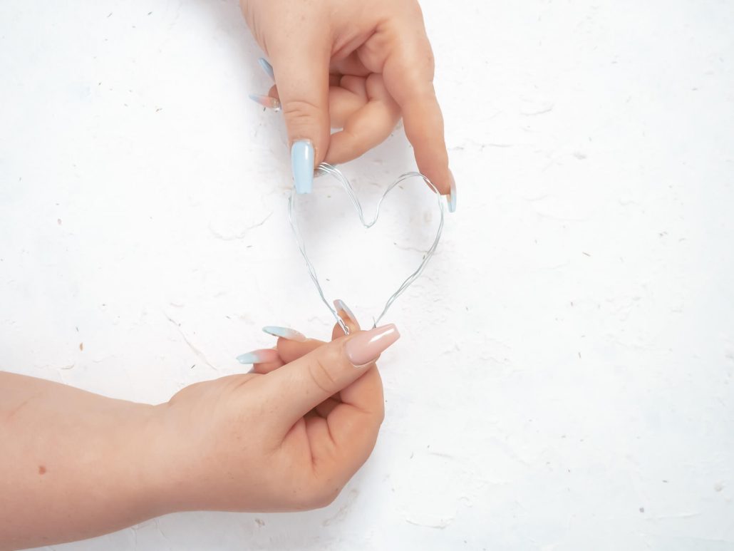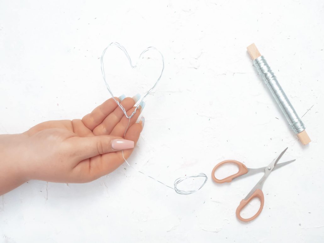 4. Jetzt drückst du von oben eine Kerbe in den Draht hinein, sodass die Herzform entsteht.