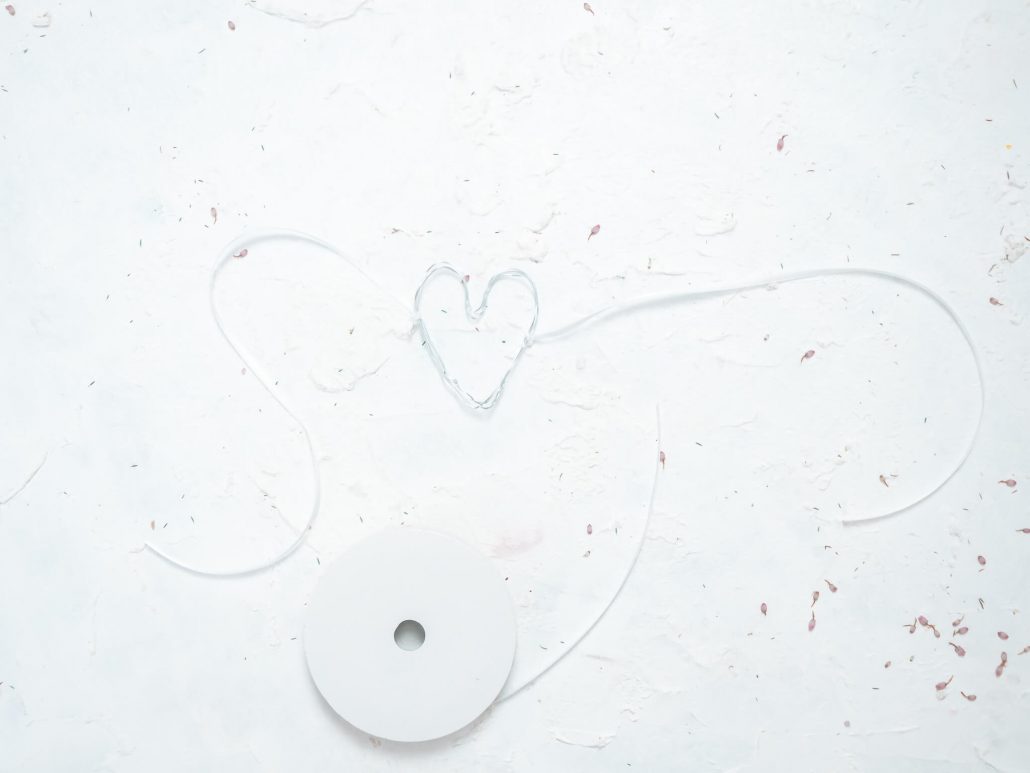 Wichtig: Passe das Schleifenband deinem Gefäß, welches du mit dem Herz dekorieren möchtest, an.
