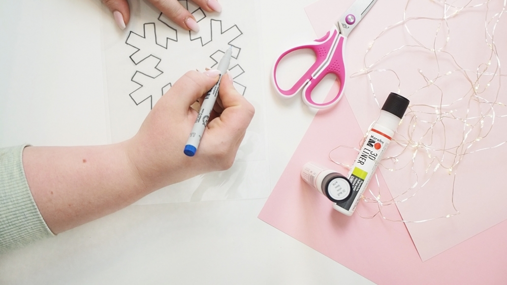 2. Nun male mit einem wasserlöslichen Folienstift die Konturen deines Motivs nach.
